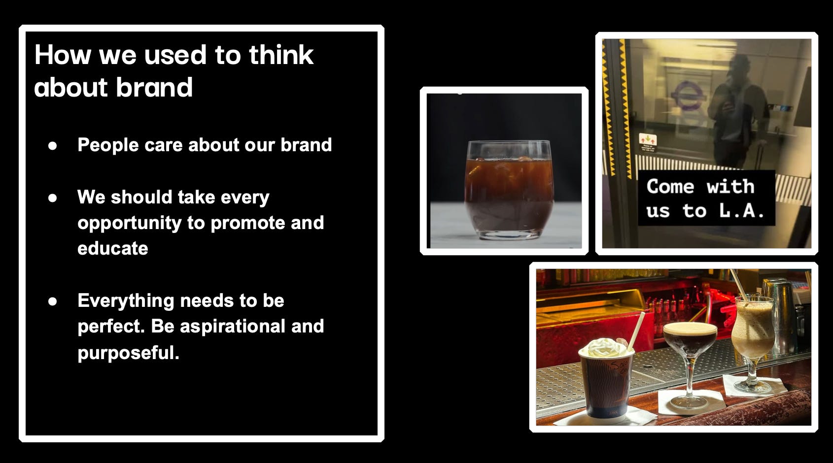 Before, we were following the typical F&B content playbook. Educate, promote, piss away money in the pursuit of looking professional. Create high quality how-to videos, show off new business wins, brag about trips to LA.