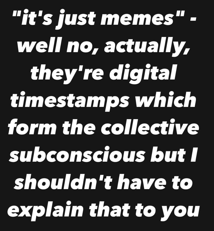 Memes are part of the ongoing commentary on the zeitgeist. The more relevant they are to the moment, the harder they hit.