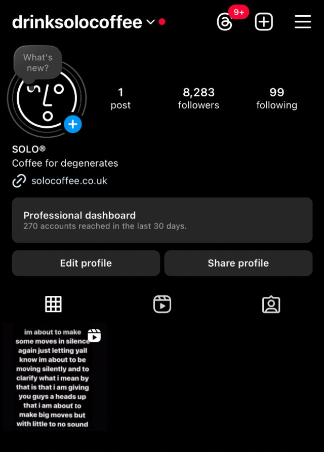 So, we deleted everything and tried something new. We left one well known meme in place of 5 years of overpriced, ignored content. This is what our insta profile now looked like.