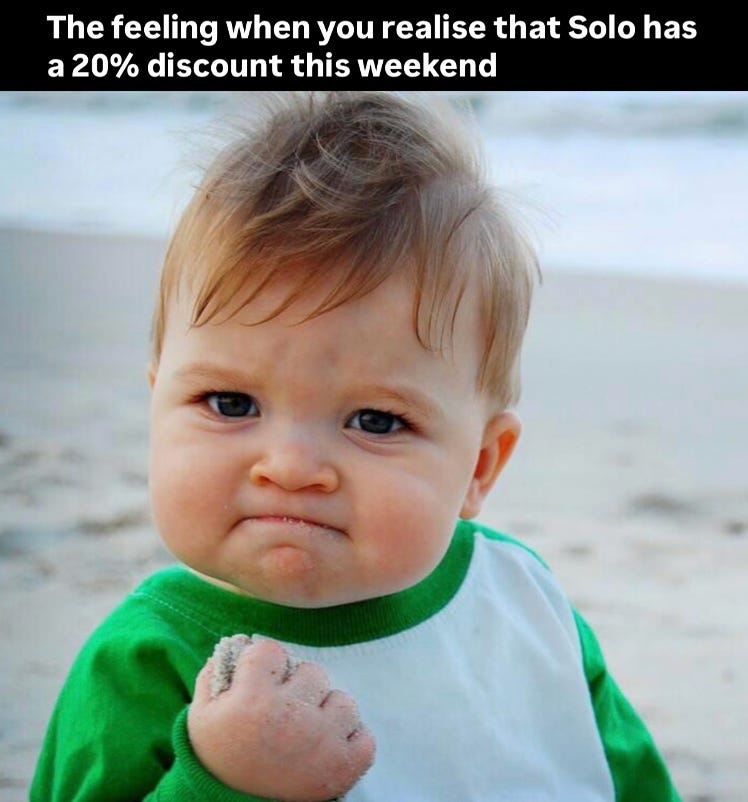 11.2 million views, 740k likes. It is relatable, shareable, and a standalone funny video. It doesn’t force Solo down people’s throats, but it reinforces our values and brought in 3,000 followers.